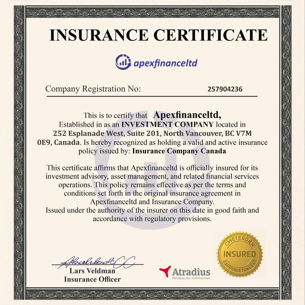 apexfinanceltd.com was founded with vision to create 100% transparent digital trading experience for its clients. We provide easy to use trading platform and spend lots of time providing education for our customers. Our company is interested in successful and prosperous traders who will create high trading volume. We are proud that we helped many customers to make revenue Our financial team also includes specialists who are experts in evaluating new private businesses called start-ups which have most chances to grow into large-scale and highly profitable enterprises.